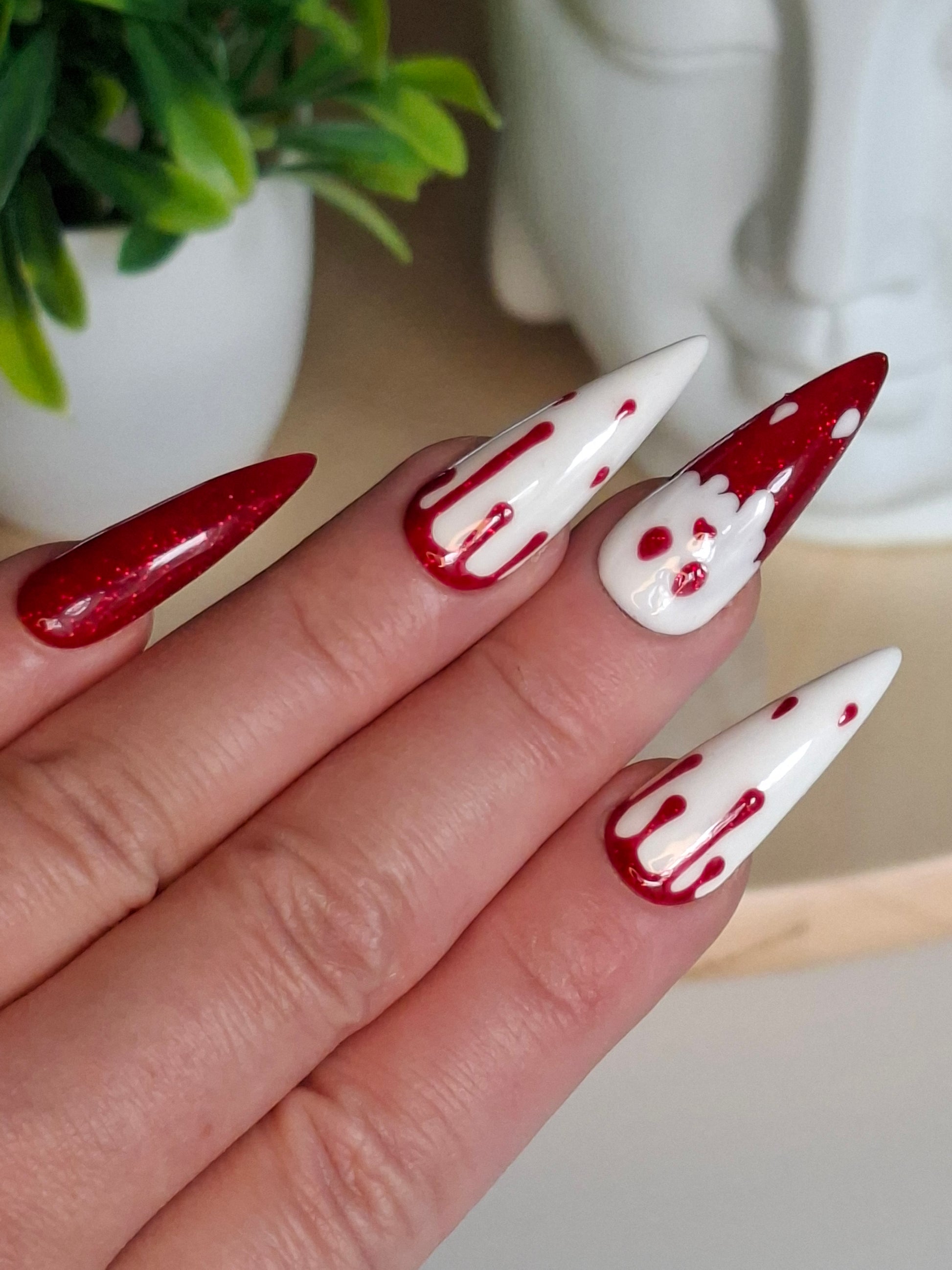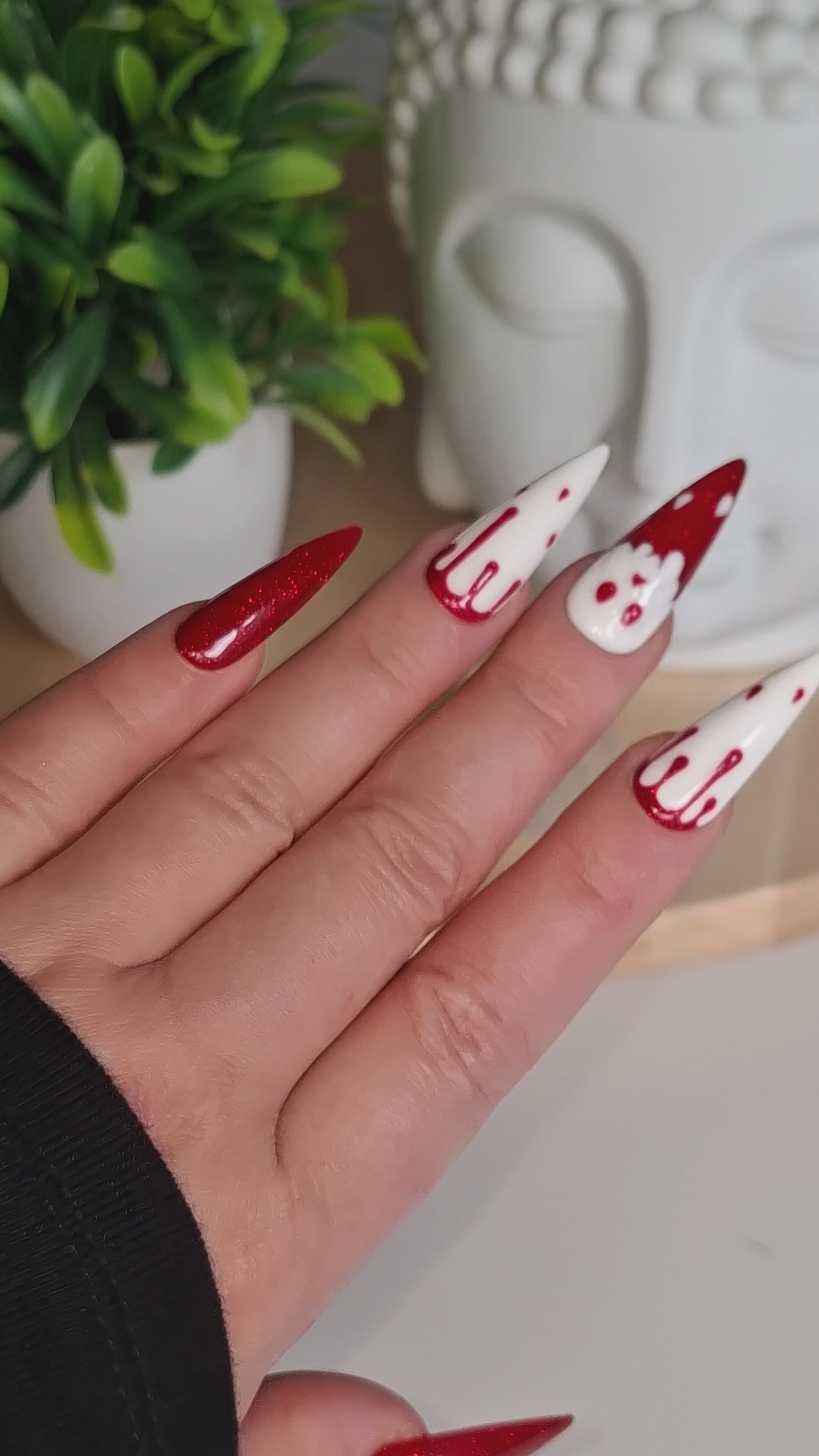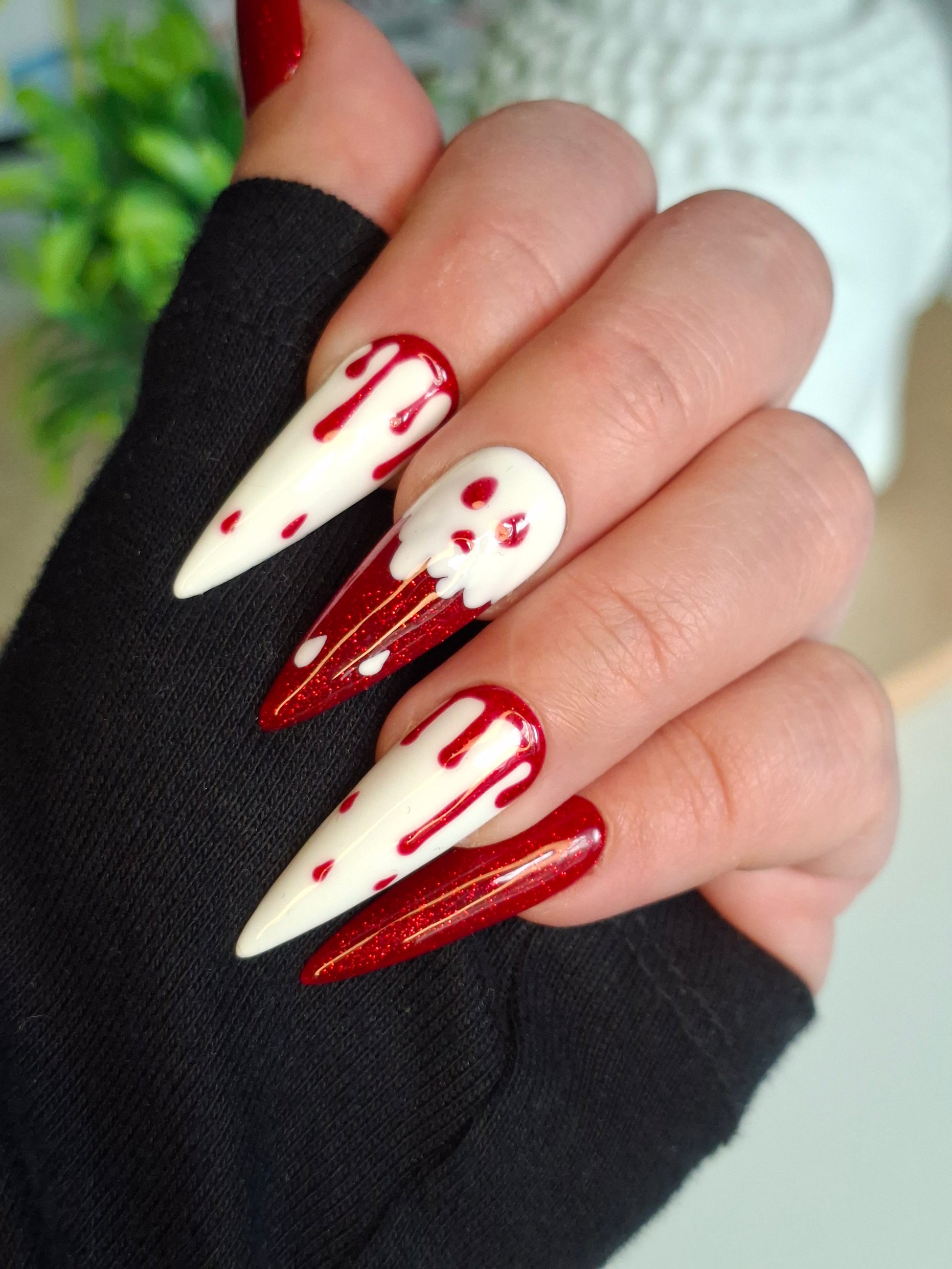 Kuvan kynsien malli ja pituus: pitkä stiletto