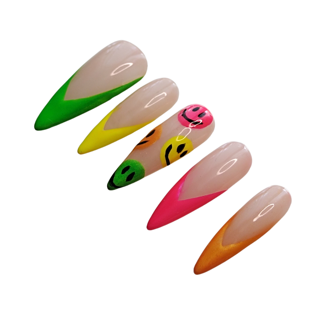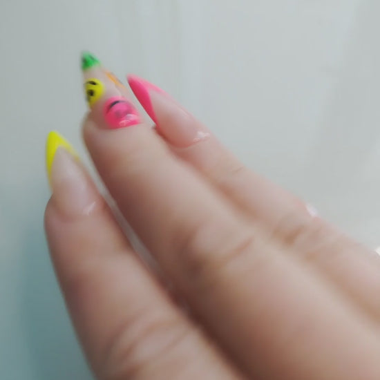 Jos haluat osan tai kaikki kynsistä erivärisiksi, laita värikoodit tilauksen lisätietoihin; esimerkiksi 0, 1, 2, 3, 4 (peukalosta pikkurilliin).