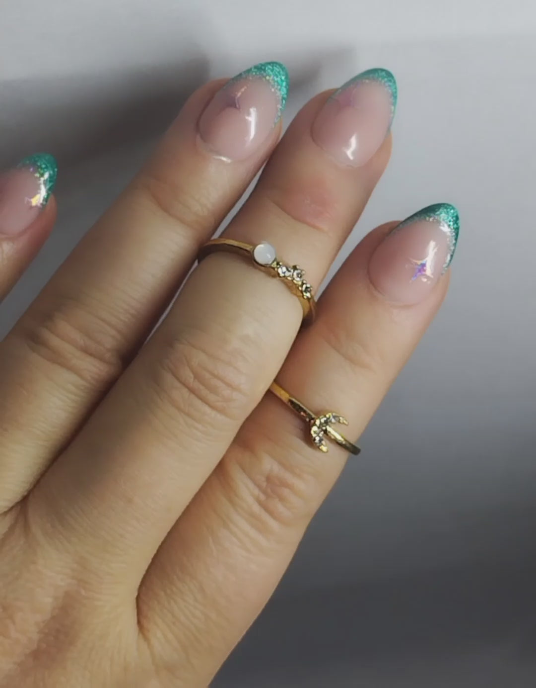 Valitse haluamasi pohjasävy ja toiveesi mukaan myös tipin sävy. Mallikynnen tipit ovat tehty cat eye-geeleillä.